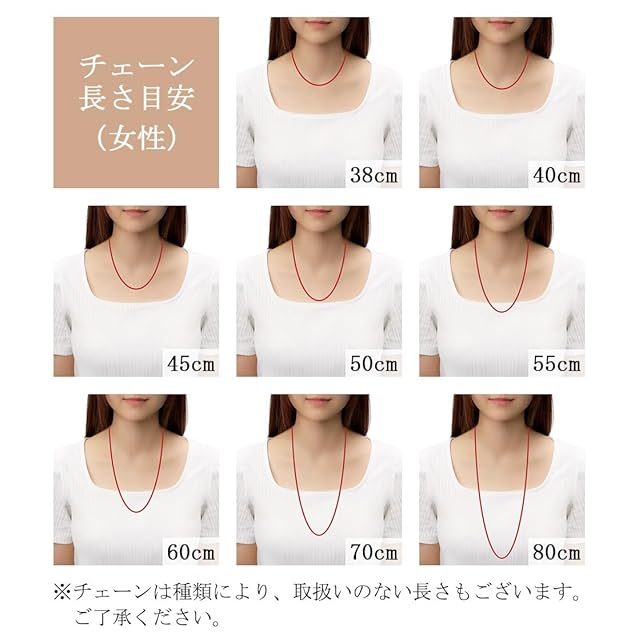 幅・長さ違いのチェーンもご用意しております。選択肢よりお選び下さい。(※現在ご覧になっているページの商品は【幅1.3mm/長さ45cm(アジャスター付き・ロジウムコーティング)】が選択されています。)
