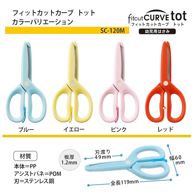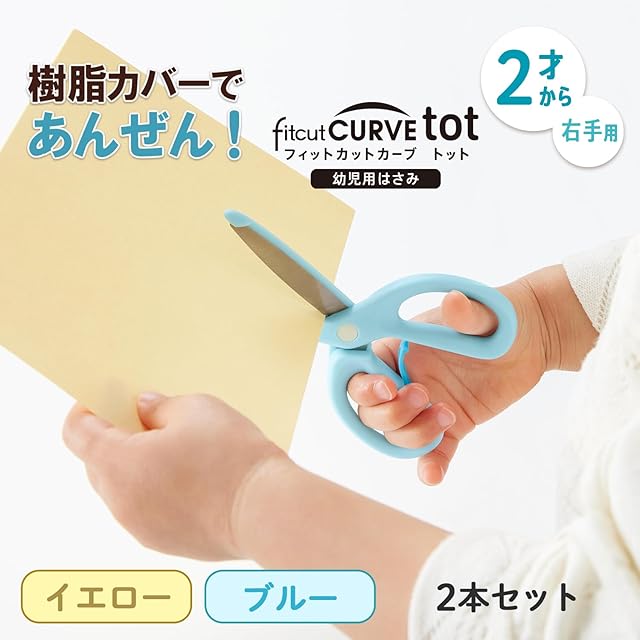 家庭用はさみNo.1ブランドのフィットカットカーブから、はさみデビューに最適な幼児用が登場。樹脂ガードで安全性を高めつつ、金属刃とベルヌーイカーブ刃で「ちゃんと切れる」幼児用のはさみです。