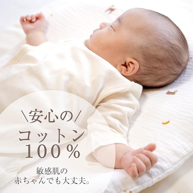 【イブルガーゼでオールシーズン使える】4重ガーゼのイブル生地を採用。ふんわりとやわらかく、赤ちゃんをやさしく包み込みます。空気を沢山含んでいるので、通気性・吸収性・速乾性が高く、夏はサラッと、冬は暖かいので、どんな季節でも快適にお使い頂けます。【安心のコットン100%】イブルは安心のコットン100%。ふんわりとした気持ちいい触り心地で、敏感肌の赤ちゃんでも安心してお使い頂けます。