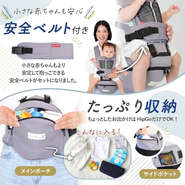 【赤ちゃんと一緒にもっといろんなところへ出掛けたい!】電車やバスなどの移動時や、荷物が増えるお買い物、お散歩はもちろん、イベントや旅行など、さまざまなシーンでお使い頂けます。アクティブなお出かけはもちろん、赤ちゃんがおねむモードの時も◎!赤ちゃんと密着できるので、お母さんのぬくもりを感じながら、安心して眠れます♪【対象年齢】6カ月(腰すわり後)~36カ月まで【推奨】15kgまで【サイズについて】ウエスト60cm~110cm調節可能 ※着用中は必ずご自身の腕で赤ちゃんを支えてください。また、安全にお使いいただくために、ヒップシートをご使用される方が変わる場合は、肩紐・ウエストベルトの再度調整を必ず行うようにしてください。※帝王切開でご出産されたお客様へ:ヒップシートは構造上、下腹部に一定の力がかかる仕様になっております。お子さまの重みで下腹部の痛みが生じる場合がございますのでご注意ください。