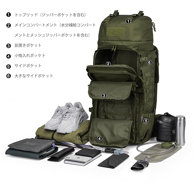 [Mardingtop] 75L ミリタリー バックパック 大容量 登山 リュック タクティカル バッグ MOLLE 軍用 リュックサック キャンプ トレッキング 旅行 防災 レインカバー付き | つむぎ屋