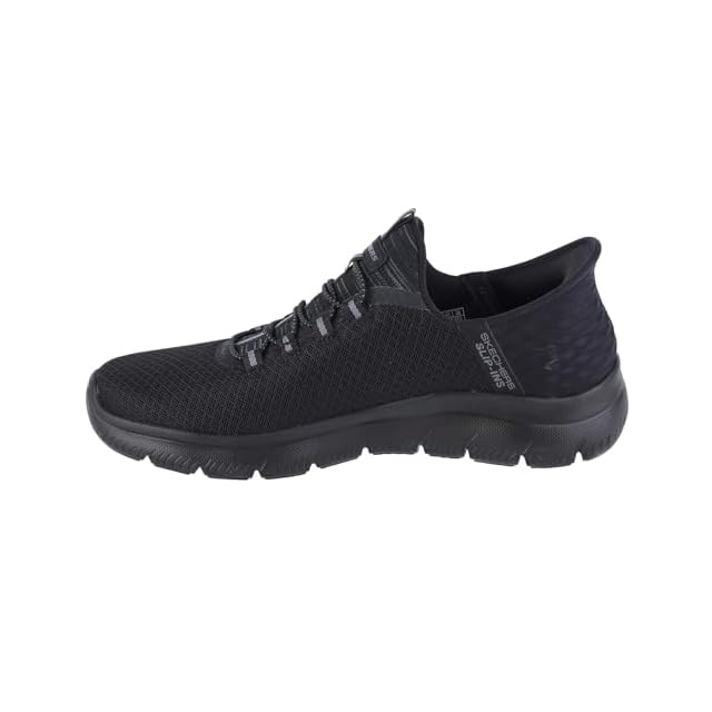Skechers Hands Free Slip-ins (スケッチャーズ ハンズフリー スリップインズ)が、すぐに足にフィット;独自のHeel Pillow (ヒールピロー)で足をしっかり固定;クッション性のあるSkechers Air-Cooled Memory Foam (スケッチャーズ エアクールドメモリーフォーム)コンフォートインソール
