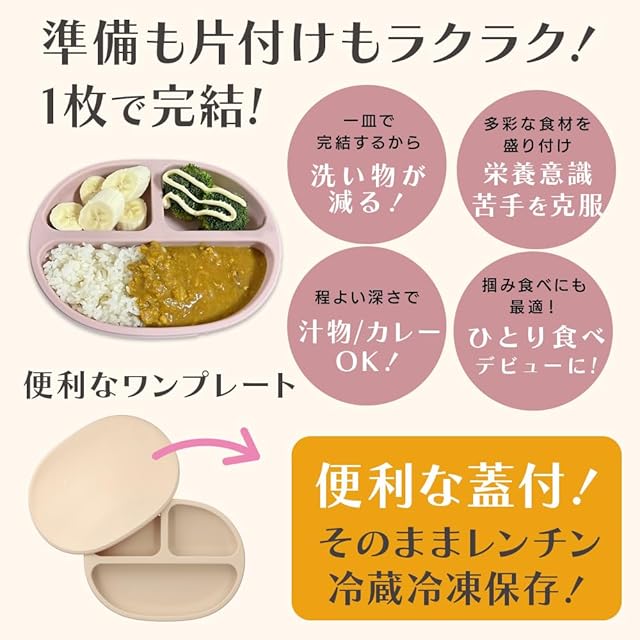 ✅【食べ残しにも便利な蓋付きプレート】プレートには専用の蓋がついているので、冷蔵所保存、電子レンジの際もラップいらずです。