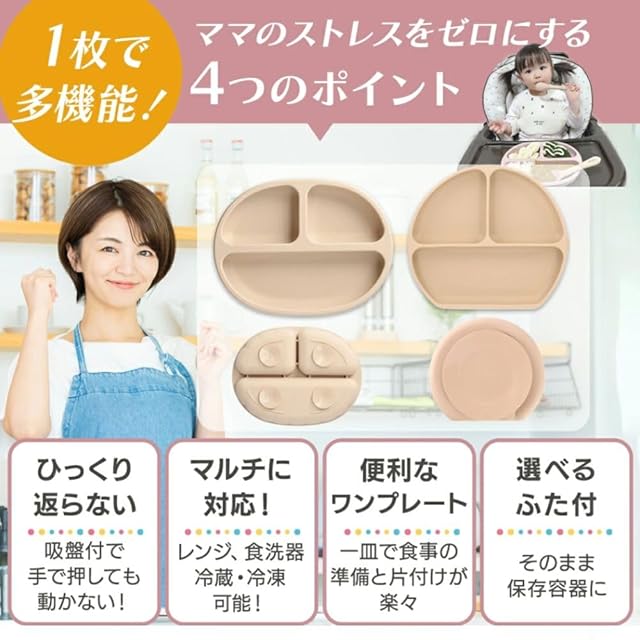 ✅【吸盤でしっかり固定】プレートには4つの吸盤がついているので、お子様がひっくり返す心配なし!シリコン素材なので食材も滑りづらくなっています。