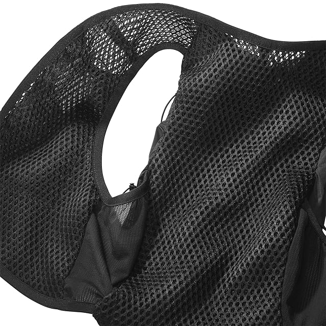 水分補給が簡単 : 2 つの胸ポケットはフラスクの出し入れが簡単です。500ml フラスク 2 個および 1.5L ブラッダー(別売)に対応。