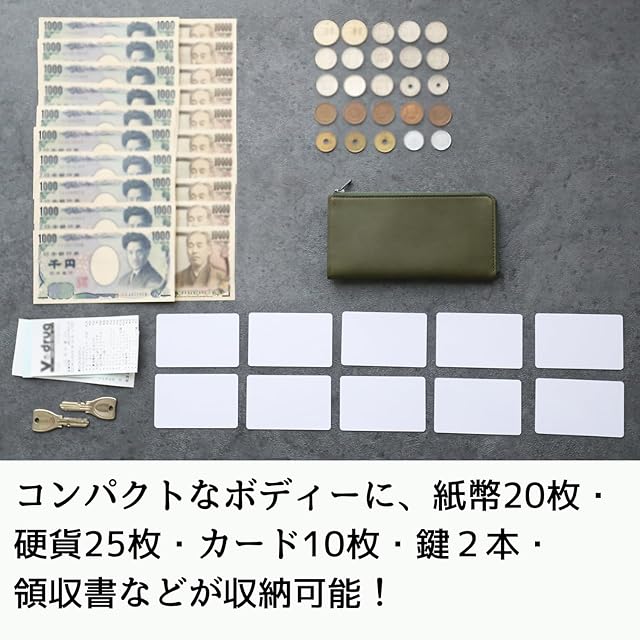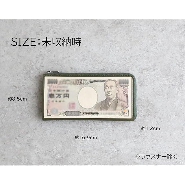 L字ファスナー長財布の「史上最小サイズ」に挑んだ、17cm×8.5cmの極限サイズ。 まるで四次元ポケット! 紙幣を曲げずに20枚、小銭25枚、カードは10枚程度まで収納可能です。