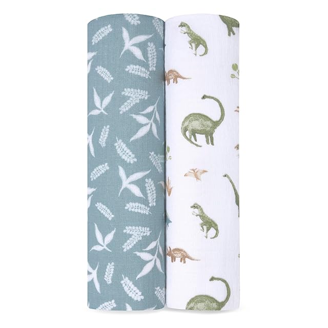 aden + anais essentials(エイデンアンドアネイエッセンシャルズ)スワドル 2枚セット dino jungle 112x112cm モスリンコットン 新生児 夜泣き対策 ガーゼ 赤ちゃん 出産祝い ベビーギフトSWADAEESWC20032