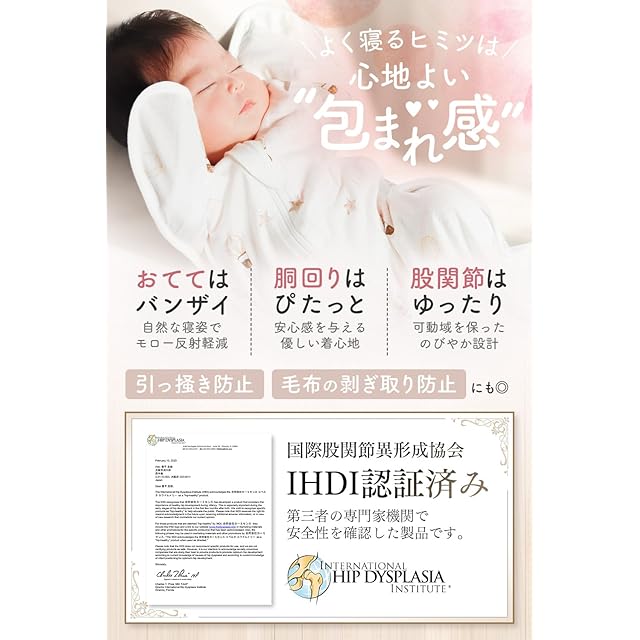 【ユニークなデザイン】赤ちゃんの手足を固定してモロー反射を防止する、従来のおくるみとは違い、コペルタのおくるみのユニークなデザインは、赤ちゃんにとって楽なバンザイポーズでぐっすり眠ることができます。