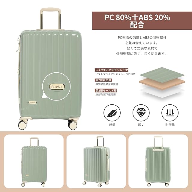 [Spyplan] スーツケース 拡張機能付き キャリーケース 機内持ち込み 超軽量 大容量 可愛い キャリーバッグ 大型 耐衝撃 ジッパータイプ 静音 ダブルキャスター 360度回転 TSAロック搭載 人気 旅行 ビジネス 出張7泊-10泊 lサイズ 預け入れ 最大, 90L-110L