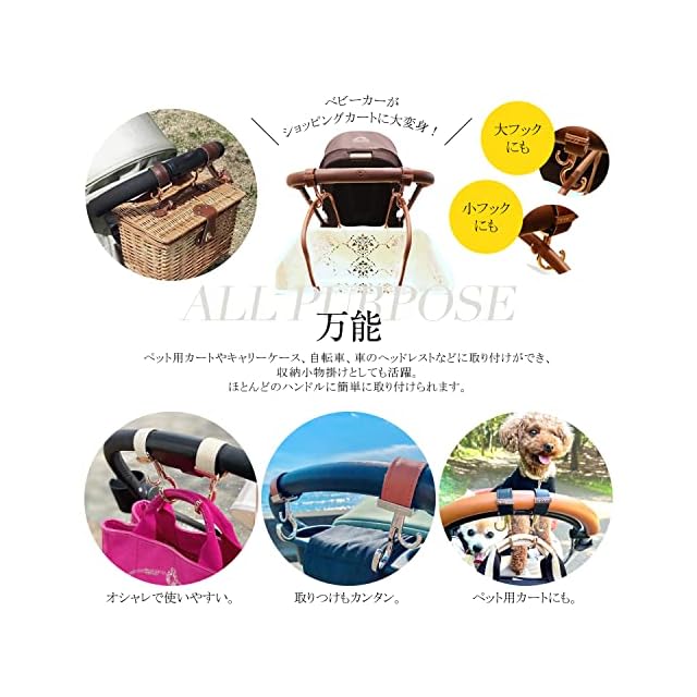 《万能に使えるマルチフック》ベビーカー以外にもペットカートや車椅子、シルバーカー、旅行のキャリーケースなどのバーや持ち手に取り付けて、様々なシーンで荷物フックとして活躍してくれます。