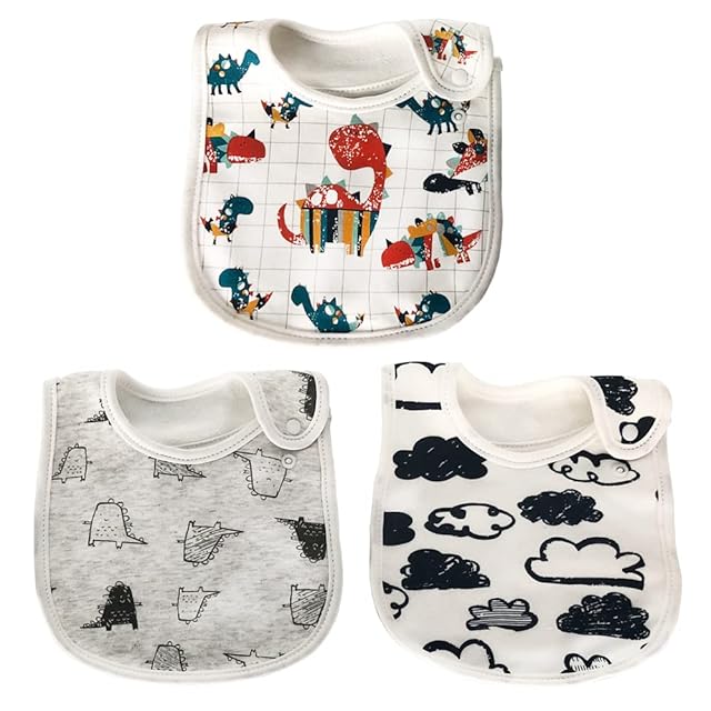 [SOULBUTY] U型よだれかけ ベビー ビブ スタイ 3枚セット 3層綿100% 吸水 柔らかい 赤ちゃん エプロン 食事用 男の子 女の子 (U型-3)
