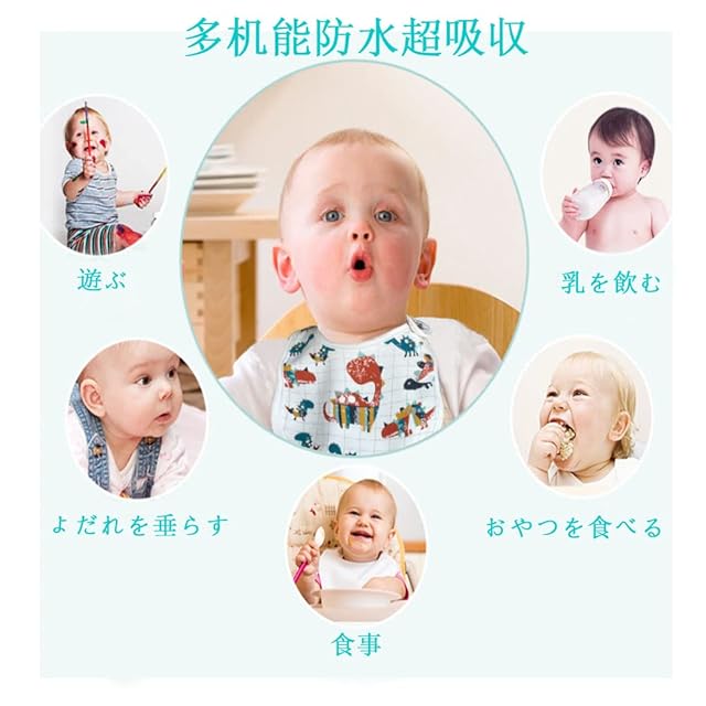 【2段階調節可能】2つのニッケルフリースナップは、赤ちゃんの成長に応じて異なるサイズを提供します。 推奨年齢:0〜6歳。 よだれ掛けは所定の位置にとどまり、赤ちゃんはそれらを引き離せなくなります。スナップボタンが付いてるので首に隙間なく留めることができ、汚れる心配がありません。取り外しもしやすい!