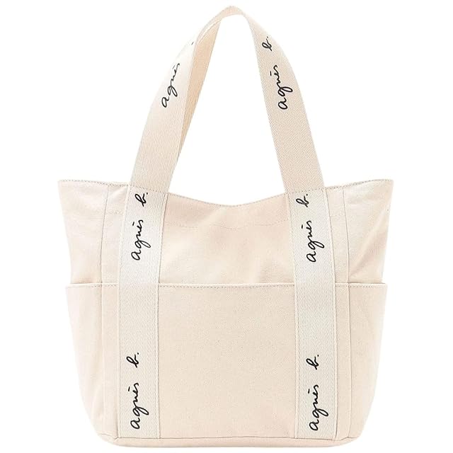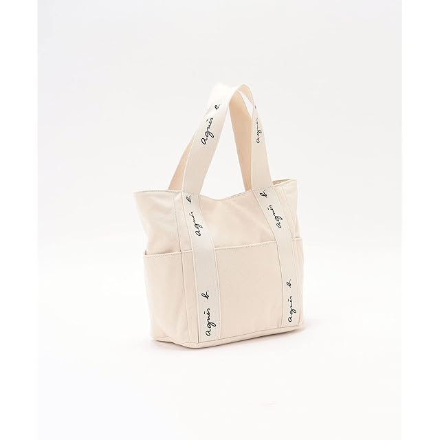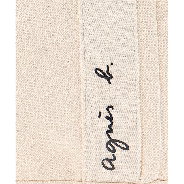 ブラックのキャンバス地にホワイトのagnes b.のロゴテープがアクセントになったトートバッグ。※こちらのカラーは、ブラックにホワイトのロゴテープが持ち手になったものです。