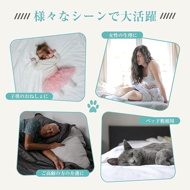 【多用途・防水シート】お子様おねしょシーツとしてはもちろん、ご病人・ご老人の介護用品やペット用としても幅広くお使いいただけます。お布団やベッドだけでなくソファーなどでも日常使いに防水シーツをご利用されている方も増えています!また小さく畳めるので持ち運びも楽ちん!旅行先でも安心して眠れます。