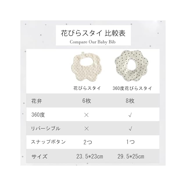 360度よだれをキャッチ:生後3ヶ月の赤ちゃんから3歳になる子供も使用可能です。360度デザインなのでしっかりよだれをキャッチでお洋服の襟元への汚れを軽減。新生児期のミルクの吐き戻しや離乳食期のお食事用前掛けとしても使えます。