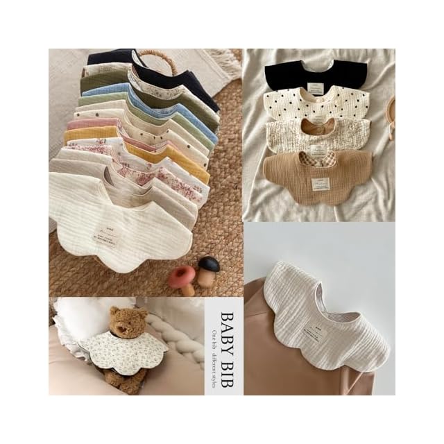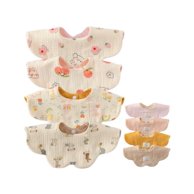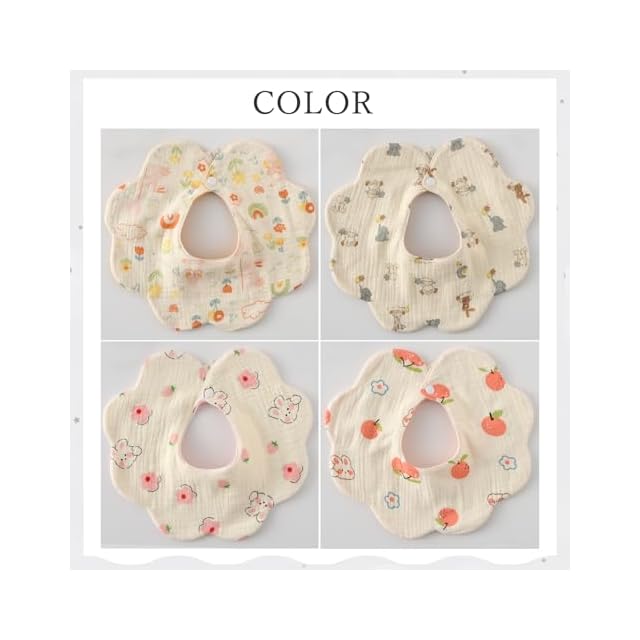 [GoUseGo] ベビー スタイ 4枚セット 両面使える 6重ガーゼ 赤ちゃん スタイ 女の子 男の子 よだれかけ おしゃれ 新生児 360度スタイ 無地 お食事スタイ ベビーギフト 出産祝い | つむぎ屋