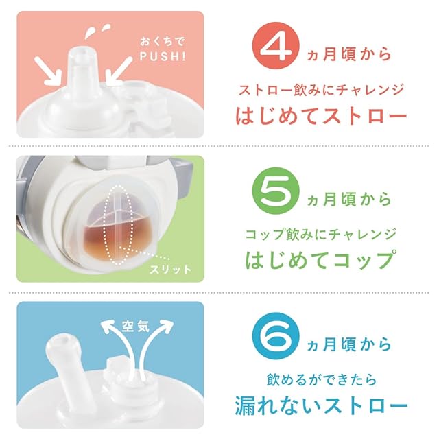 はじめてストロー(4ヶ月~)・はじめてコップ(5ヵ月~)・240mlボトルのセット