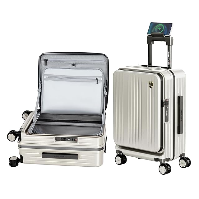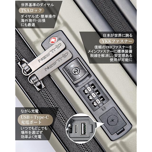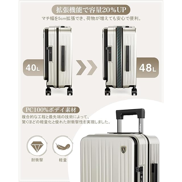 [New Trip] スーツケース キャリーケース フロントオーポン 片開き PC100% 拡張機能付き 機内持ち込み キャリーバッグ USBポート付き ストッパー付き スマホスタンド 隠しフック 軽量 大型 S/M/Lサイズ 耐衝撃 ファスナータイプ 静音ダブルキャスター TSAロック 海外 旅行 ビジネス 出張 (オートミールグレー、Sサイズ/機内持ち込み/1~3泊) | つむぎ屋
