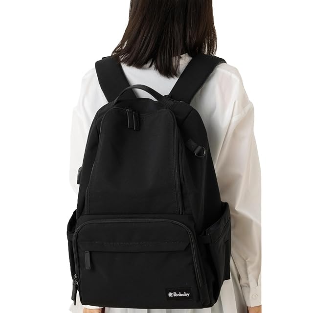 【商品詳細】カラー:オールブラック / サイズ:厚み21cm 幅30cm 高さ44cm / 重さ:約830g / 容量:27L 収納できる物:哺乳瓶、粉ミルク、水筒、離乳食、スタイ(よだれかけ)、オムツ、タオル、おしりふき、抱っこ紐、着替え、おもちゃ、財布 、携帯など。 商品を開封した際に生地の臭いが気になる場合は、陰干しをしていただくことで臭いを抑えることができますので、お試しください。