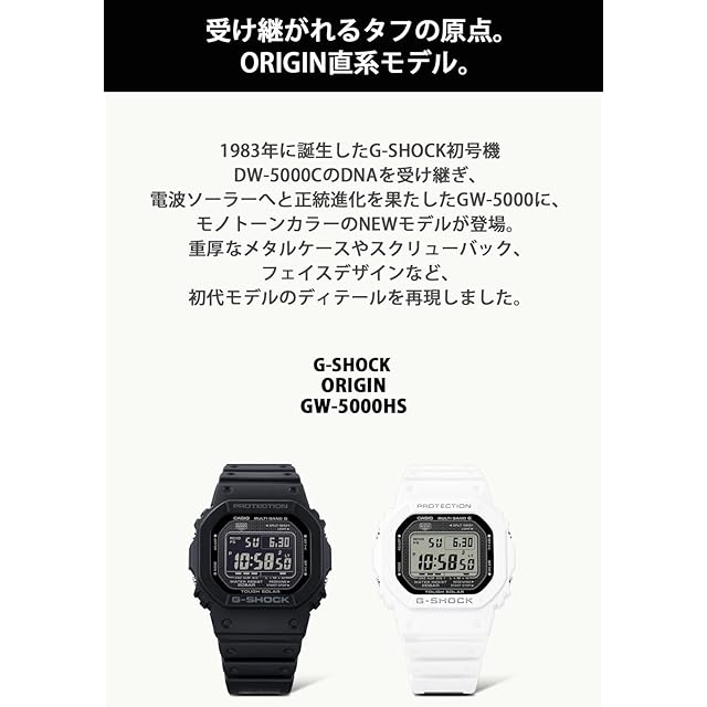 1983年に誕生したG-SHOCK初号機DW-5000CのDNAを受け継ぎ、電波ソーラーへと正統進化を果たしたGW-5000のモノトーンカラーモデルのご紹介です。