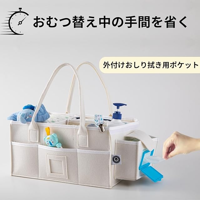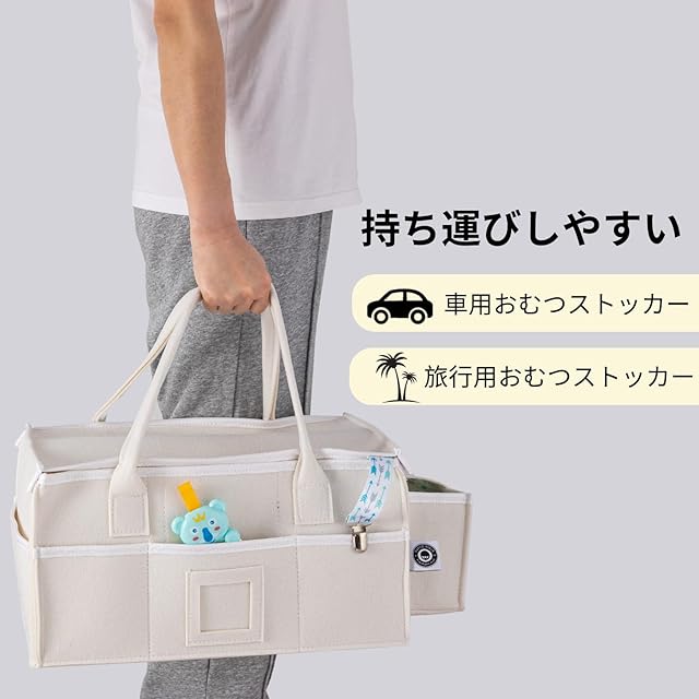 【大容量収納】おむつやおしりふき、着替え、御襁褓、ベビー服、小物など赤ちゃんのものを全て収納できるので、とても便利です。【型崩れしにくい】従来品より厚手の4mmフェルト素材を使用し、厚みがあるので、普通のフェルトのように型崩れを起こしません。 使用しないときは折りたたんで収納しておくと邪魔になりません。