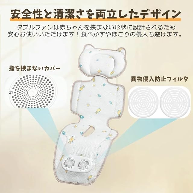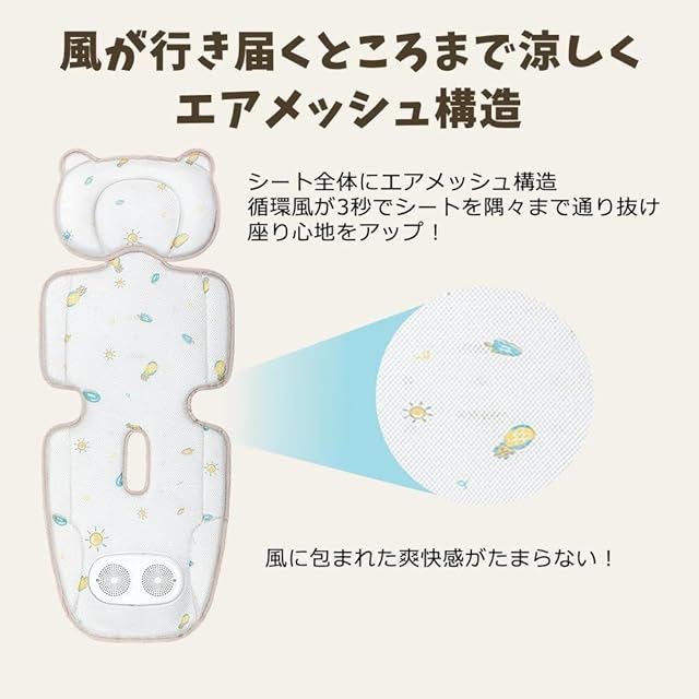 【ソフトウィンドシステム】2つのファンを備えたメッシュパッド入りシートクッションは、赤ちゃんを涼しく保ち、一定の空気循環を提供します。周囲の風、3段階の風速調整、赤ちゃんは退屈したり泣いたりすることなく長時間旅行できます。赤ちゃんが快適で、あせも軽減できます。