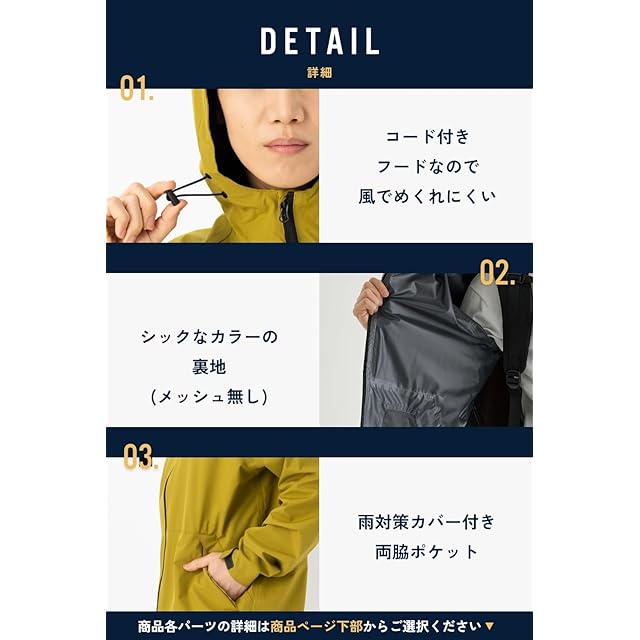 ✅【使いやすいサイドポケット付き】 ジャケットには取り出しやすいサイドポケットがあり、大変便利で、かつ雨が入りにくい構造となっております。✅【フードの特徴】 ①サイズ調整可能なドローコードが付き ②フードにベルクロが付いており、折りたたみ可能 ✅【ズボンのウエストは紐で調整可能】