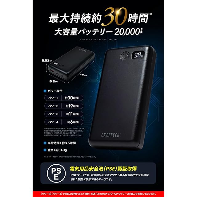 ✅【セット内容】ベスト・ファン・モバイルバッテリー・ケーブル・USBコード・取扱説明書(書つき)※本商品にはACアダプターは付属されておりません。 【について】はお買い上げ日より6ヵ月間です。 ※修理・交換の際には書の提示が必要となりますので大切に保管していただきますようお願い申し上げます。 ※EXCITECH COOL VEST専用のファン、バッテリーを必ずご使用ください。他社製品と組み合わせて使用しないでください。(期間内でも弊社専用機器以外を接続したことによる故障は対象外となります。) ※モバイルバッテリーを充電する際に、定格電源:5V⎓2.1A以上のものをお使いになられて故障した場合や、EXCITECH COOL VEST以外の製品に使用され故障した場合は、期間内でも対象外となります。 ✅【PSE認証取得済み】Excitech(エキサイテック)は、安心安全のPSE認証取得済みです。PSEとは電気用品安全法の基準に適していることを示す表示マークです。