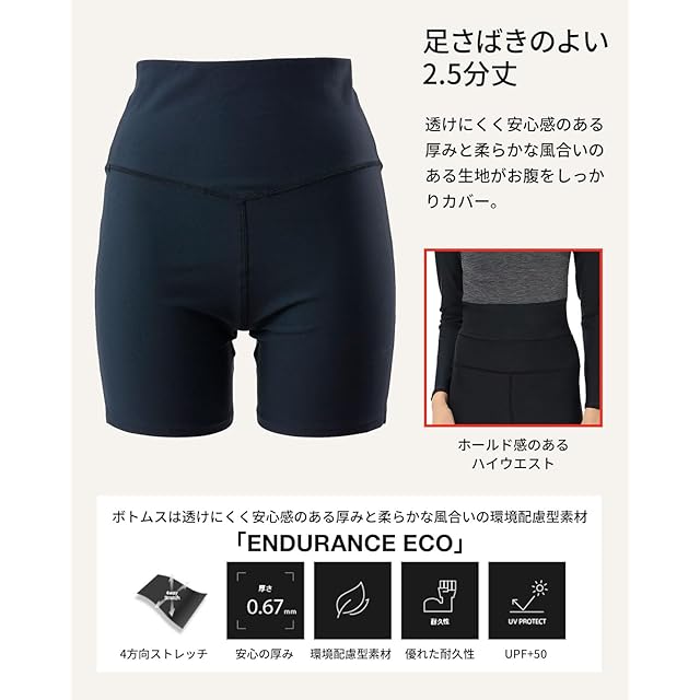 【シンプルでおしゃれ】肌あたりがなめらかで着用感は抜群。プールでのエクササイズ以外にもレジャーやホットヨガなど、さまざまなシーンでマルチに活躍。