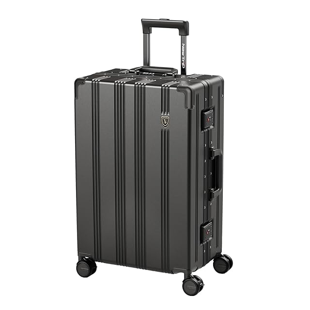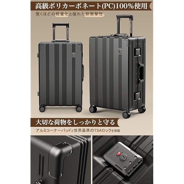 [New Trip] スーツケース キャリーケース アルミフレームタイプ 静音キャスター&ストッパー付き PC100%素材 耐衝撃 TSAロック 隠しフック ビジネス 出張 旅行 キャリーバッグ Mサイズ 4~7泊 ガンブラック色 | つむぎ屋