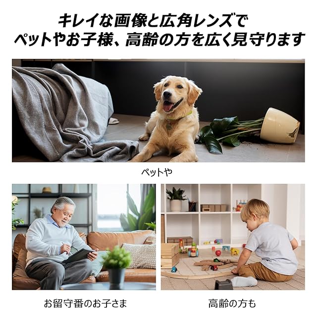 【ペットカメラ】 - どこにいても愛しいペットとつながることができます。双方向オーディオやリアルタイムビデオストリーミングなどの高度な機能により、ペットの様子を確認し、話しかけることができます。カメラの高画質ビデオ、動体検知、ナイトビジョンは、薄暗い環境でも瞬間を逃さずに捉えます。仕事中でも旅行中でも、このペットカメラが安心感を提供し、大切なペットとの絆を深めます。