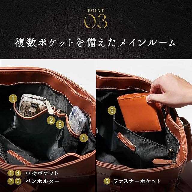 [GLEVIO(グレヴィオ)] ビジネスバッグ メンズ ビジネストートバッグ キャメル ダークブラウン