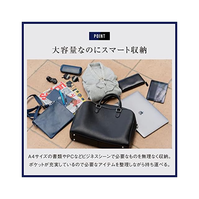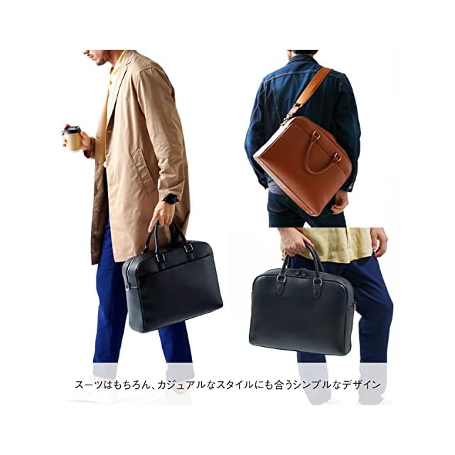 ✅【コンパクトな薄型ブリーフケースがさらに進化して登場!】ノートパソコンと財布と手帳、スマホ、ペン、タブレット、名刺入れなど、ビジネスマンの必要最低限のものを収納するのにベストなビジネスバッグが登場。 外側は傷のつきにくいシュリンクレザーを使用し、ハンドル部分にも牛革を贅沢に使用。長持ちできるように素材にこだわりました。 また、カラーはベーシックなブラック、ネイビーをはじめ、カジュアルシーンにも使えるキャメルを選定しました。 通勤にはもちろん、オンオフ問わずお使いいただけます。