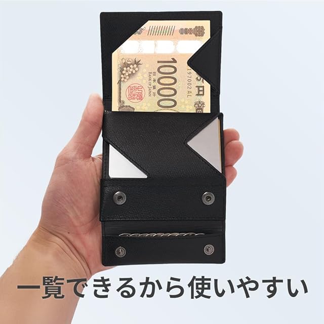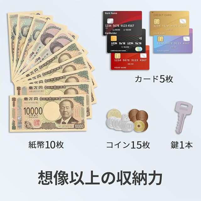 カード5枚、コイン10枚、お札10枚を入れて、その厚さ、わずか約13mm。