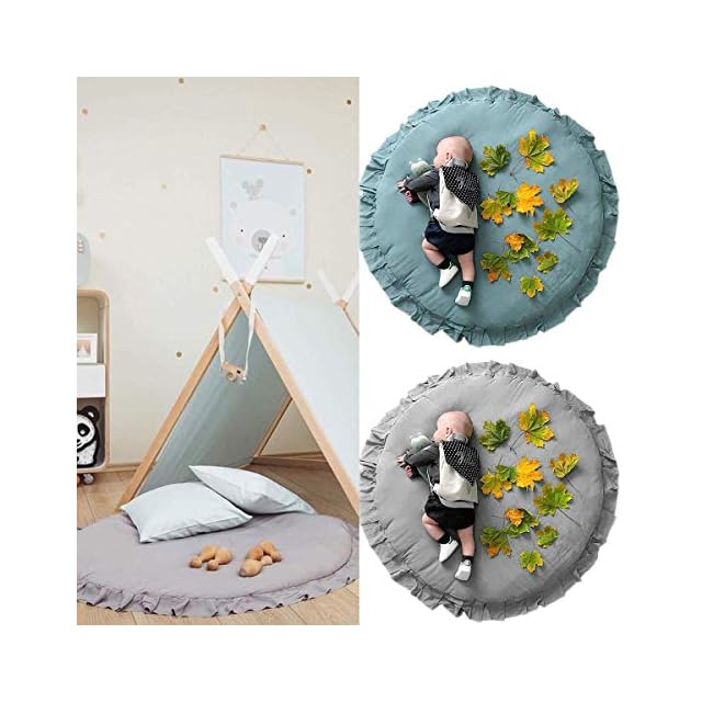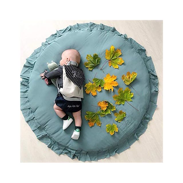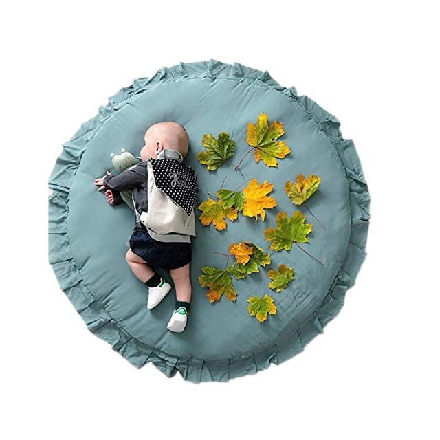 ORFINA ベビープレイマット 円形 おしゃれ 遊びラグマット サークルマット ベビークロールマット 柔らかい 綿 毛布レース パッド 超ソフト 四季兼用 水洗い可能 取り外し可能 ふんわり 厚手 赤ちゃん ギフト キッズ 抗菌加工 約直径100cm ファスナー付き (グリーン) | つむぎ屋