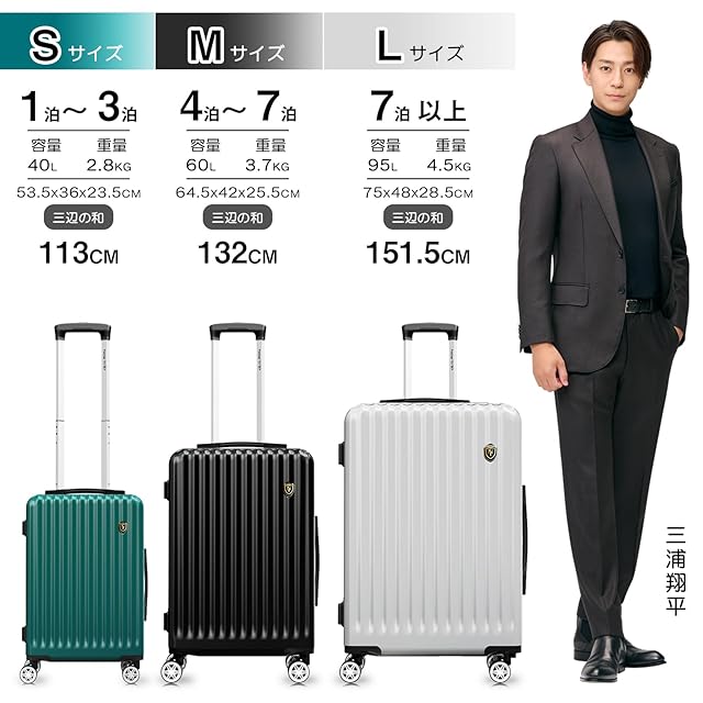 【高品質なボディ&信頼のYKKファスナー】ABS樹脂は軽くて弾力性と割れに強く、PC(ポリカーボネート)樹脂は耐衝撃性・断熱材に優れる、両素材を混合した耐久性が高いハードタイプの高品質ボディを実現しています。また、日本が世界に誇るYKKファスナーをメインファスナーに標準装備。ファスナータイプのスーツケースによくあるファスナーの不具合(ファスナー脱線や開き)を解消し、長期にわたり安定した使用感が可能となりました。
