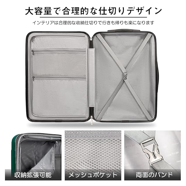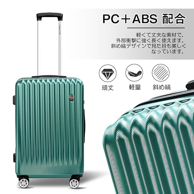 [New Trip] スーツケース キャリーケース 機内持ち込み 軽量 大型 S/M/Lサイズ キャリーバッグ 耐衝撃 大容量 ファスナータイプ 静音 ダブルキャスター TSAロック 海外 旅行 ビジネス 出張 (グリーン、Lサイズ:7泊~長期旅行/95L) | つむぎ屋