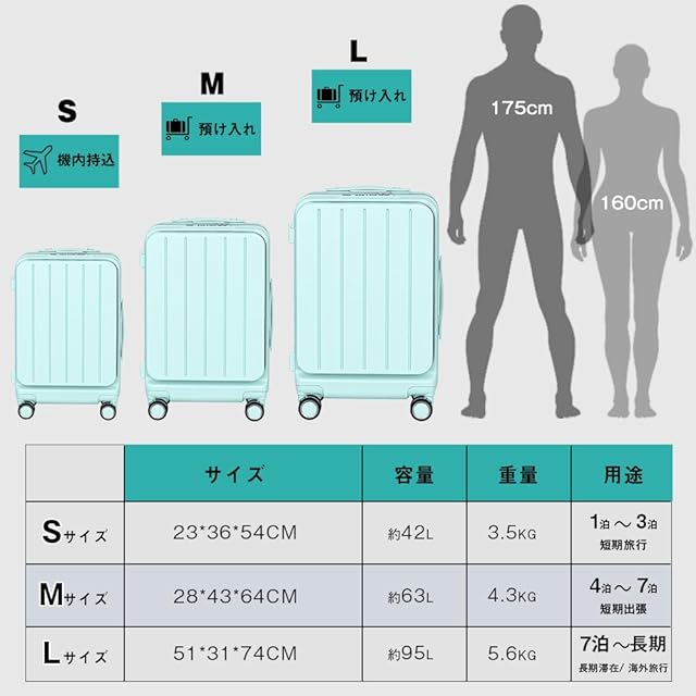 ✅【スーツケース フロントオープンで取り出し簡単|Sサイズ機内持ち込み対応】 PCや書類、小物類をスムーズに取り出せるスーツケース フロントオープン構造を採用。移動中や空港のセキュリティチェック時でもすぐにアクセス可能。スーツケース 拡張機能付きながら、コンパクトで機内持ち込みサイズにも対応。仕事用のキャリーケースとしても最適で、急ぎのビジネス対応や通勤にも使える多機能キャリーバッグです。要注意:拡張前のSサイズは機内持ち込み対応(※航空会社によって異なる)