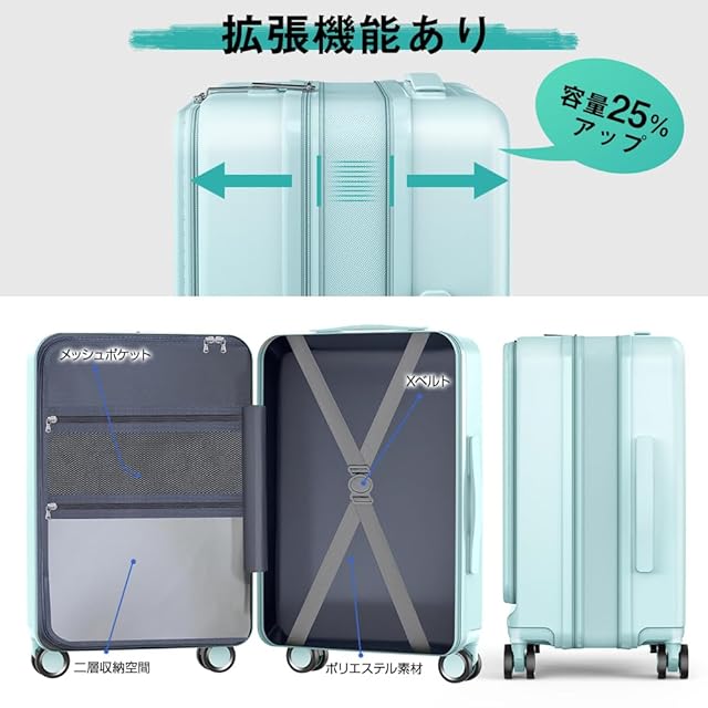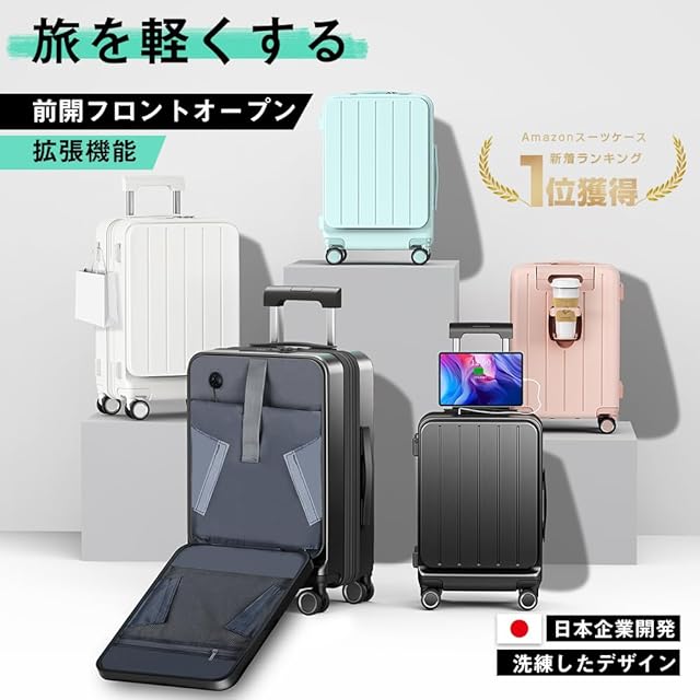 ✅【スーツケース フロントオープン構造|機内や移動中でも出し入れスムーズ】 ノートPCやタブレット、小物類を素早く取り出せるスーツケース フロントオープン設計。特に出張や空港でのセキュリティチェック時に便利です。Sサイズのスーツケース 拡張機能付きは、拡張せずに使えば機内持ち込み可能なため、国内外問わず移動時に役立ちます。スマートで機能的なキャリーケースをお探しの方におすすめです。