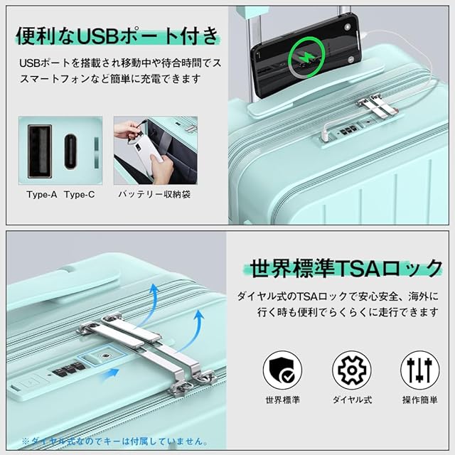 ✅【TSAロック搭載・ファスナー式開閉|海外旅行や出張に最適】 アメリカ旅行でも安心なTSAロックを標準搭載したスーツケースで、安全面にも配慮。拡張機能を使えば大容量にも対応でき、長期滞在時の荷物もしっかり収納。スーツケース フロントオープンとスーツケース 拡張機能付きの便利さを兼ね備えた、ビジネスや旅行に信頼できるキャリーケース。おしゃれで実用的なキャリーバッグとして人気のモデルです。