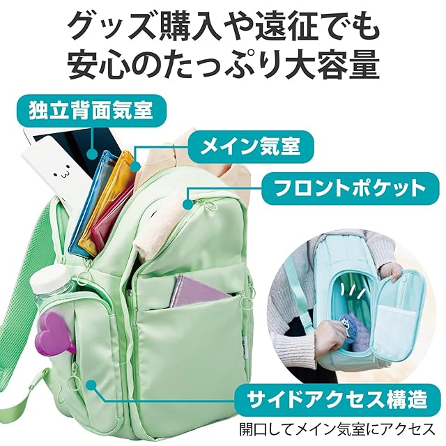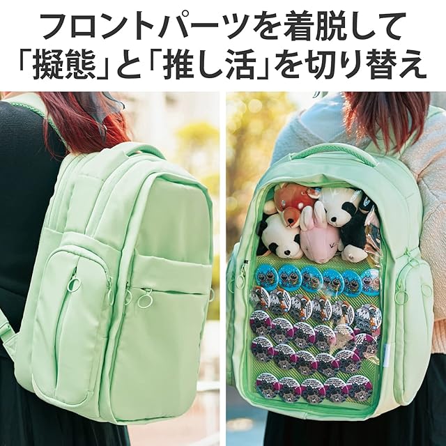 エレコム バックパック 推しごとバッグ 痛バッグ Mサイズ フロントパーツ着脱可能 擬態モード 推し活モード パステルグリーン BM-OGBP02MGN