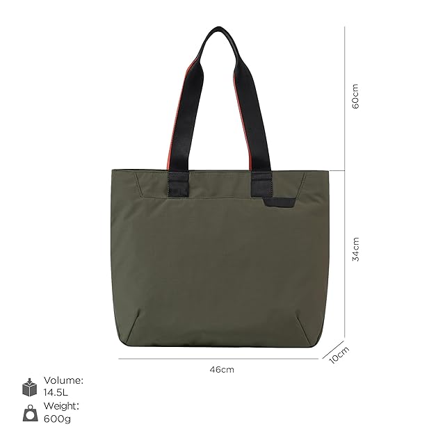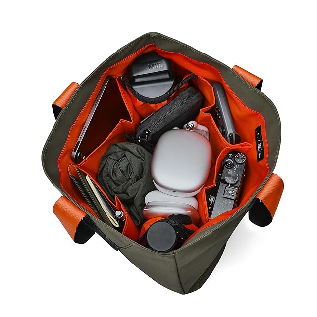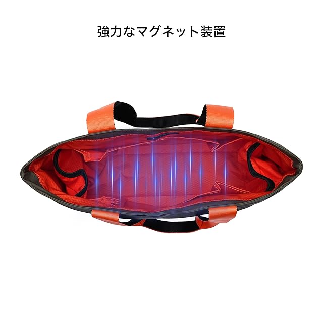 【高品質で耐久性の高いトートバッグ】ペットボトルなどのプラスチック素材から作られたリサイクル生地「Axoflux 210D」は、耐候性と耐久性に優れています。内側は300Dのオレンジのポリエステルを使用、デザインにもこだわっています。