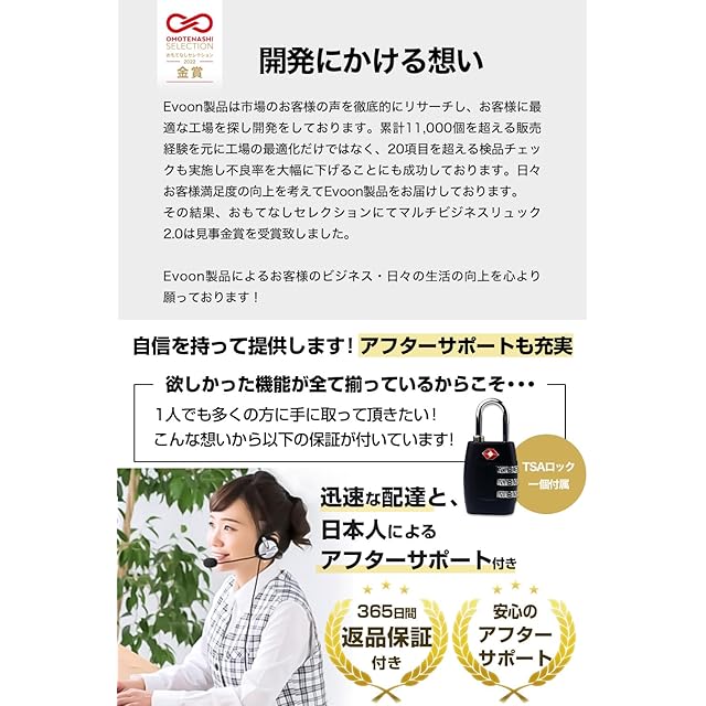 【365日の品質付きで充実】機能性、実用性に自信を持っているからこそも充実!購入後サイズが合わない、すぐに壊れた、不良個所がある等ご不満がございましたらすぐにお問い合わせください。迅速で柔軟にアフターサービスをとらせていただきます。購入前、購入後共に日本人スタッフによるサポートを行わせていただきます。 さらに、お届け後、365日以内の通常利用の破損につきましては、交換などの品質のご対応をとらせていただきます。何かございましたらお気軽にEvoonカスタマーサポートまでご連絡くださいませ。