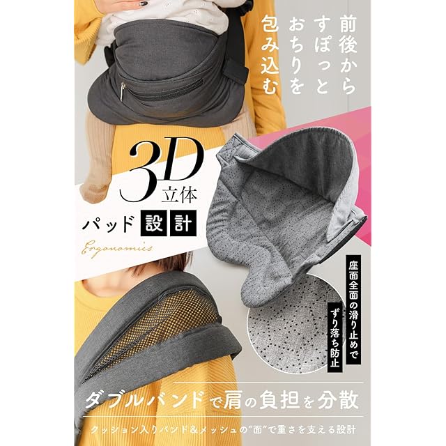 【滑り止め加工付き】 ベビースリング のパッド部分には細かいグリップつぶを敷き詰めまています♪ これにより、ピタっとキャッチして、おしりがずれる心配もなくなります。