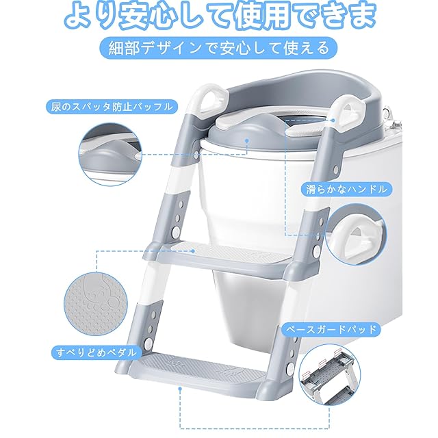 6段階高さ調整】子供の成長に伴う身長の変化に適応するために。私たちは6段の階段を設計しました。独自のニーズに合わせてネジを調整することで高さを制御することができ、使用は非常に簡単です。2歳からの適齢期の子供はすべて使うことができて、あなたの赤ちゃんの身長がどんなに高くても、すべて高さの調整を行うことができて、あなたはいつも赤ちゃんが正しい座り方を使うことを助けることができて、快適なトイレの体験をもたらすことができます。この設計は、異なる年齢層の子供の要求を満たすことができ、トイレトレーニングを完了し、良好なトイレ習慣を身につけることができる。