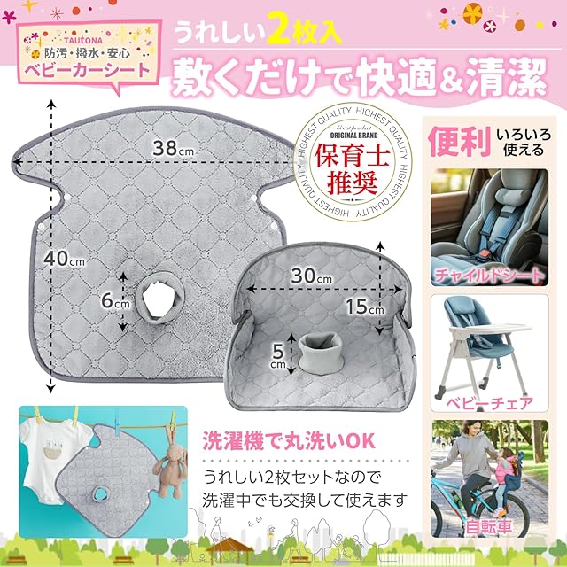 【サイズ】幅38cm × 高さ40cm(中央ガード高さ5cm) チャイルドシート、ベビーチェア、自転車の子ども乗せシートなど幅広く使えます。