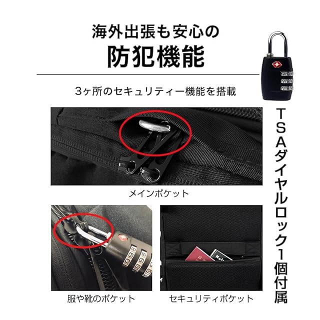 【TSAダイヤルロック一個付属】TSAダイヤルロックを一個無料で付属しております。これで海外出張も安心!(フロントポケットの上段にTSAダイヤルロックが入っています)