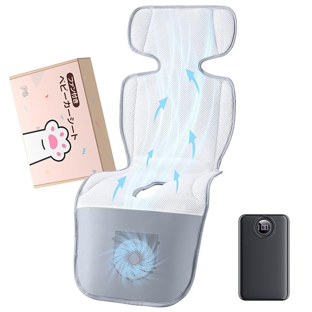 SAMONIC ファン付きベビーカーシート ファンシート ベビーカー チャイルドシート保護マット 扇風機付き 【12000mAh大容量バッテリー&着脱式ファン】 3段階風量調節 3段階タイマー設定 ベビーカーファンシート 防水 省エネ 静音 暑さ対策 熱中症対策 (グレー)