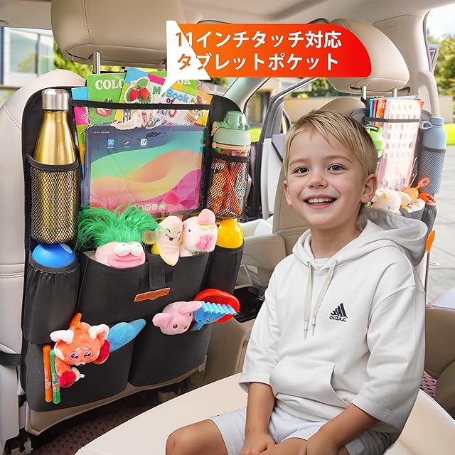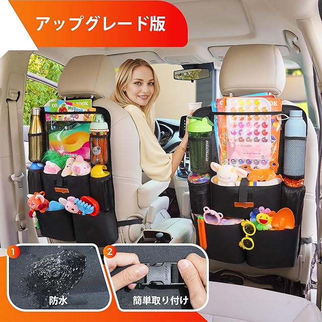 スマート収納デザイン: 水筒、おもちゃ、本、ティッシュ、スナックを収納できる8つの独立したコンパートメントを備えている; 後部座席を整理整頓し、家族に優しい環境を提供