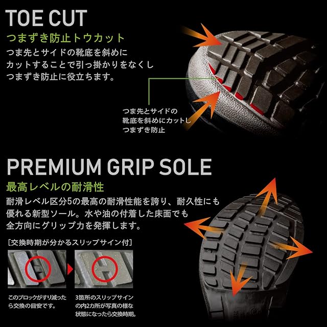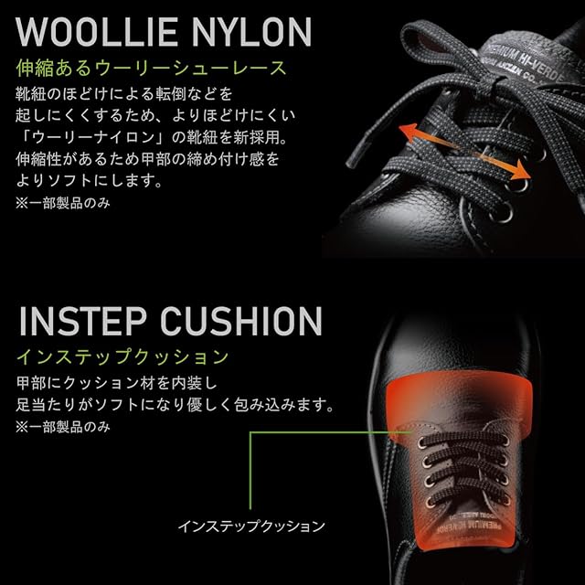 [規格] ●JIS T8101 C1(革製安全靴)/S(普通作業用)/P1(耐衝撃性能、耐圧迫性能、表底剥離抵抗、かかと部の衝撃エネルギー吸収性、表底の耐燃料油性、クリート付き表底)/F2(耐滑性:区分2)